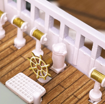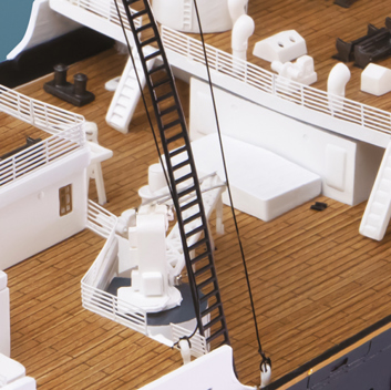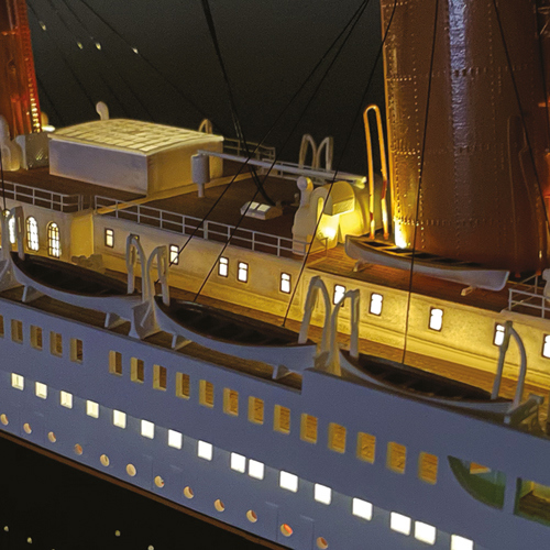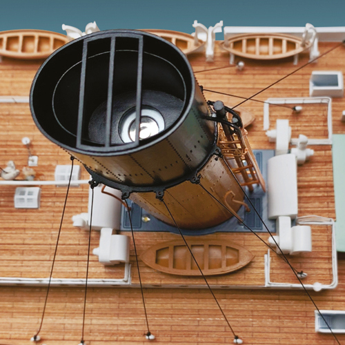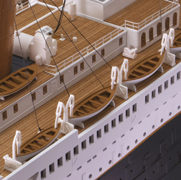 Povestea Titanicului nu este doar povestea celei mai luxoase, celebrate și rememorate nave de pasageri din toate timpurile. Este, totodată, povestea seducătoare a unei epoci „efervescente” de inovații tehnologice sclipitoare și de excepție. Ne îmbarcăm literalmente la bordul său pentru a-i descoperi toate detaliile de construcție, începând de la sălile mașinilor până la saloanele somptuoase, de la mobilierul interior al cabinelor până la dotările tehnice ale punții. O capodoperă a modelismului maritim, care poate fi admirată în cel mai mic detaliu de construcție și estetică, de un realism și o perfecțiune absolute.